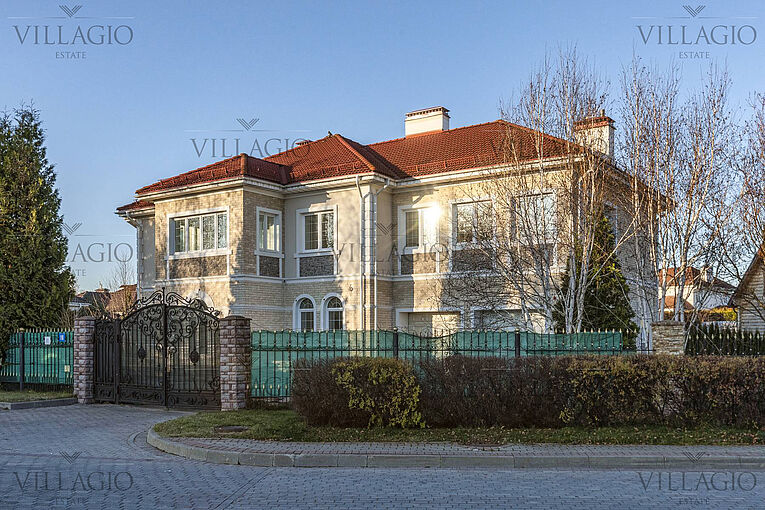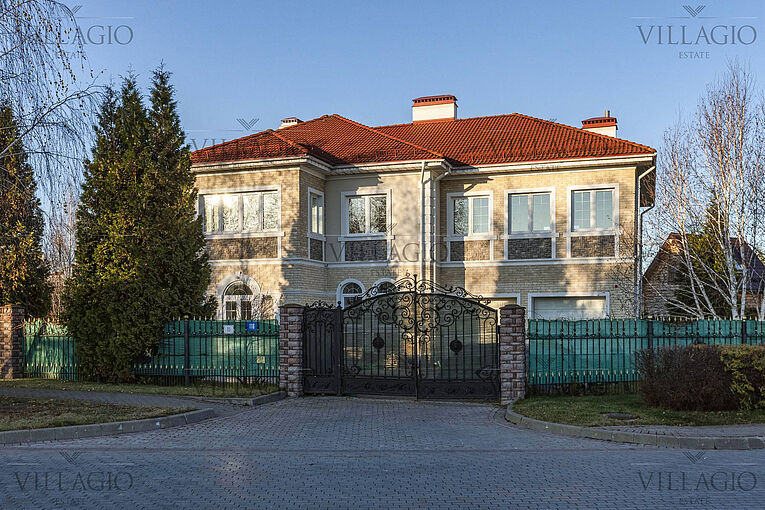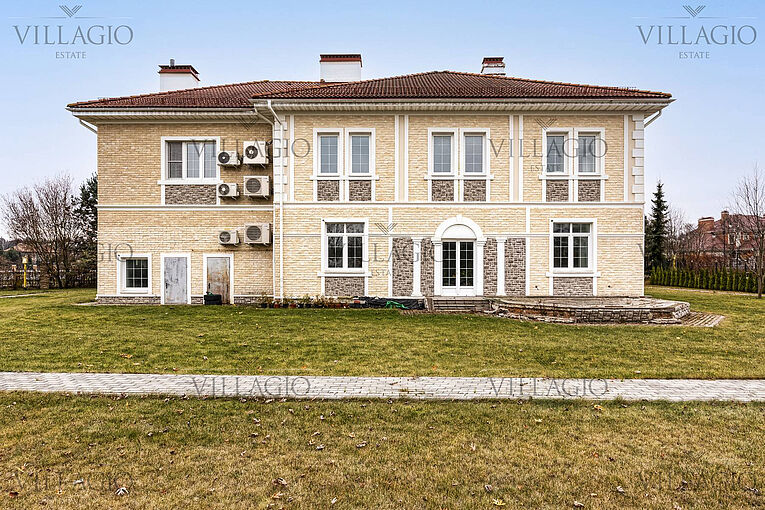 Дом двухэтажный, построен из бетона и кирпича, фасады облицованы натуральным камнем и оштукатурены. На втором этаже есть просторные балконы и лоджии. Со стороны внутреннего двора забетонировано основание под террасу. К особняку подведены инженерные коммуникации, внутренняя разводка не проводилась.