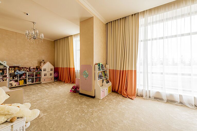 3 спальные комнаты со своими сан. узлами и гардеробными. Гараж на 2 м/м. Кв-ра для персонала. Приточно-вытяжная вентиляция и кондиционирование. Отличнейшее состояние дома!