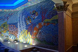В цоколе – домашний кинотеатр, бильярдная, совмещенная с баром, spa-зона с хаммамом, джакузи, гидромассажным душем, массажными столом и креслом, гардеробной комнатой; технические помещения – домашняя прачечная, гладильная комната, бытовая мойка, гардеробная для сезонной одежды, бойлерная, вентиляционная – с выходом в гараж, техническая комната-”мультирум”, две отапливаемые комнаты, оборудованные системой естественной приточно-вытяжной вентиляции с выходом на улицу. Все помещения цокольного этажа имеют высокие открывающиеся окна и оснащены приточно-вытяжной вентиляцией.