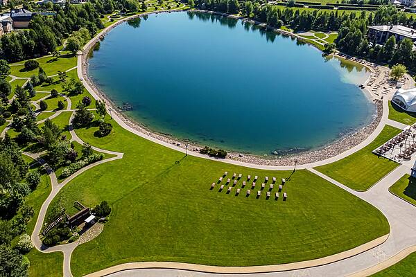 Гринфилд — очень зеленый поселок! Его главные «жемчужины» это парк с озером и атмосферой элитного итальянского курорта Forte Dei Marmi и чистейшее озеро с белоснежной береговой линией. Во всем поселке царит атмосфера расслабления: вдоль тенистых бульваров тянется живая изгородь, а за ней полоса деревьев. Вместе они создают живописное пространство для прогулок, а повседневная жизнь становится воодушевляющей и гармоничной.