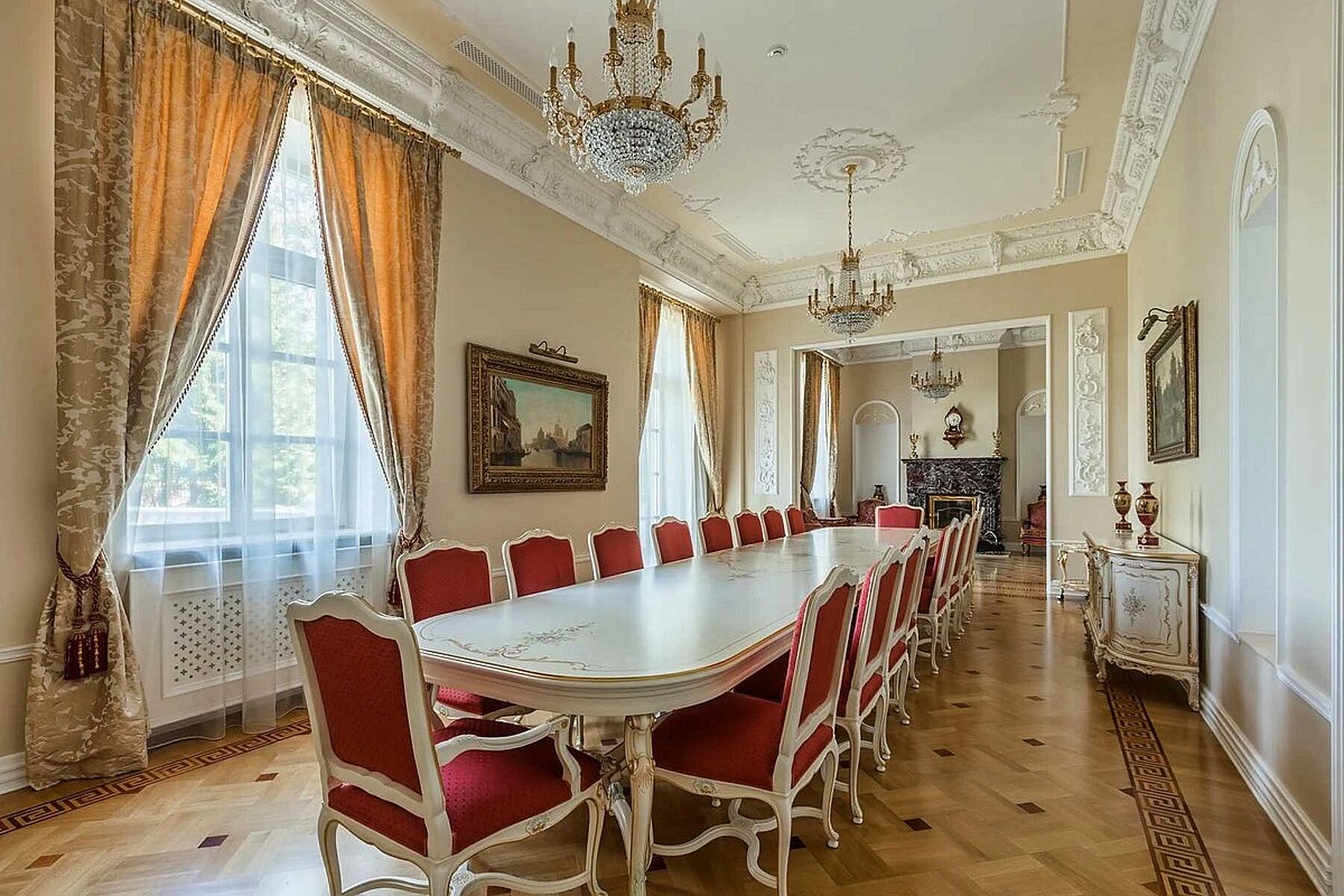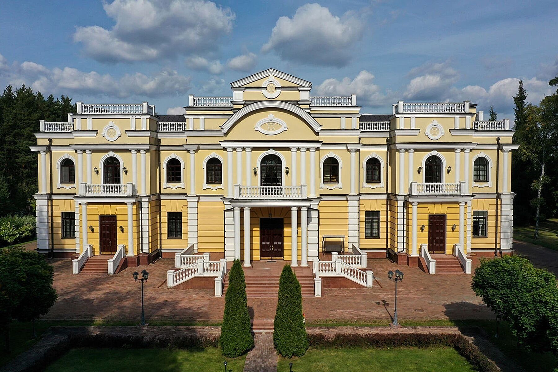 Дворец площадью 2 247 м² расположен у озера с карпами — идеальным местом для вечерних прогулок. Кроме того, дом стоит на лесном участке площадью 200 соток и в цену включена аренда леса площадью 1,1 Га. Можно гулять на свежем воздухе и днем, и ночью.