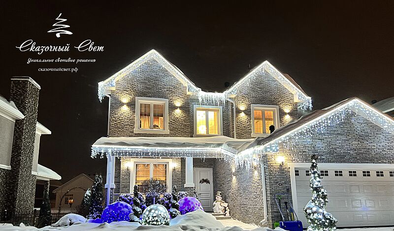 А представьте, как волшебно будет смотреться ваш дом и участок, если их украсят гирляндами мастера ландшафтного дизайна, которые профессионально занимаются праздничной иллюминацией! Тут все зависит от ваших пожеланий и архитектурных особенностей вашего дома — возможно, вам понравится идея подчеркнуть праздничной подсветкой ровные контуры фасада или, наоборот, окутать стены и крышу уютным одеялом из огоньков, как будто ваш дом находится в облаке из светлячков.