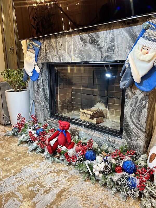 А как насчет праздничного интерьера? Все начинается с красивого хвойного венка на входной двери. Внутри дома дизайнеры интерьеров украсят стены и окна нежным праздничным освещением, хвоей, украшениями премиальных брендов и другими предметами декора, которые сразу наполнят дом новогодним волшебством. И конечно, Новый год нельзя представить себе без праздничной елки.