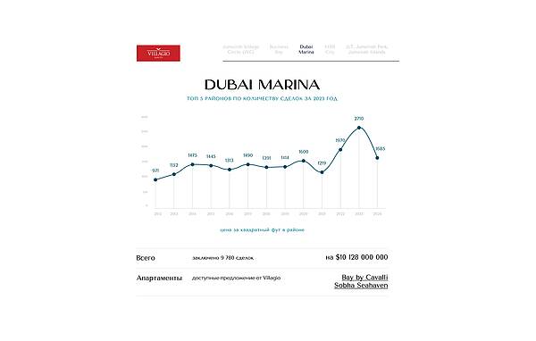 Важно отметить, что 2023 год стал самым выдающимся для рынка недвижимости Дубая за последние несколько лет. Достигнут исторический максимум: общая стоимость проданных объектов достигла $111,9 млрд.