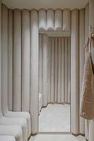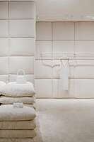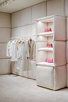 Авторы проекта — бюро AMO — использовали не только один цвет, но и один материал. Поскольку магазин площадью 60 квадратных метров располагался в помещении без окон, архитекторы решили спроектировать его в виде уютной спальни. Так появилось обилие подушек, которые служат здесь и отделочным материалом, и мебелью.