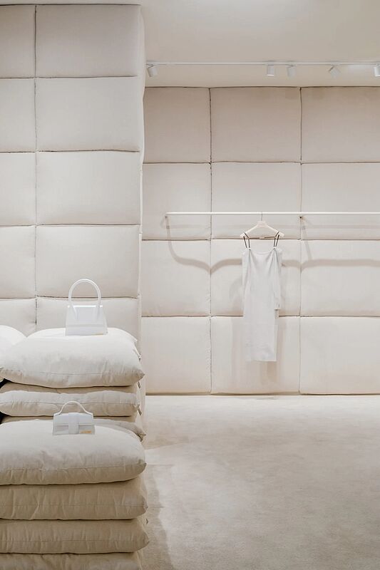 Стопка подушек приглашает посетителей отдохнуть, а располагающая и расслабляющая атмосфера позволяет чувствовать себя как дома. Поэтому Jacquemus — это больше, чем просто магазин и место для покупок.