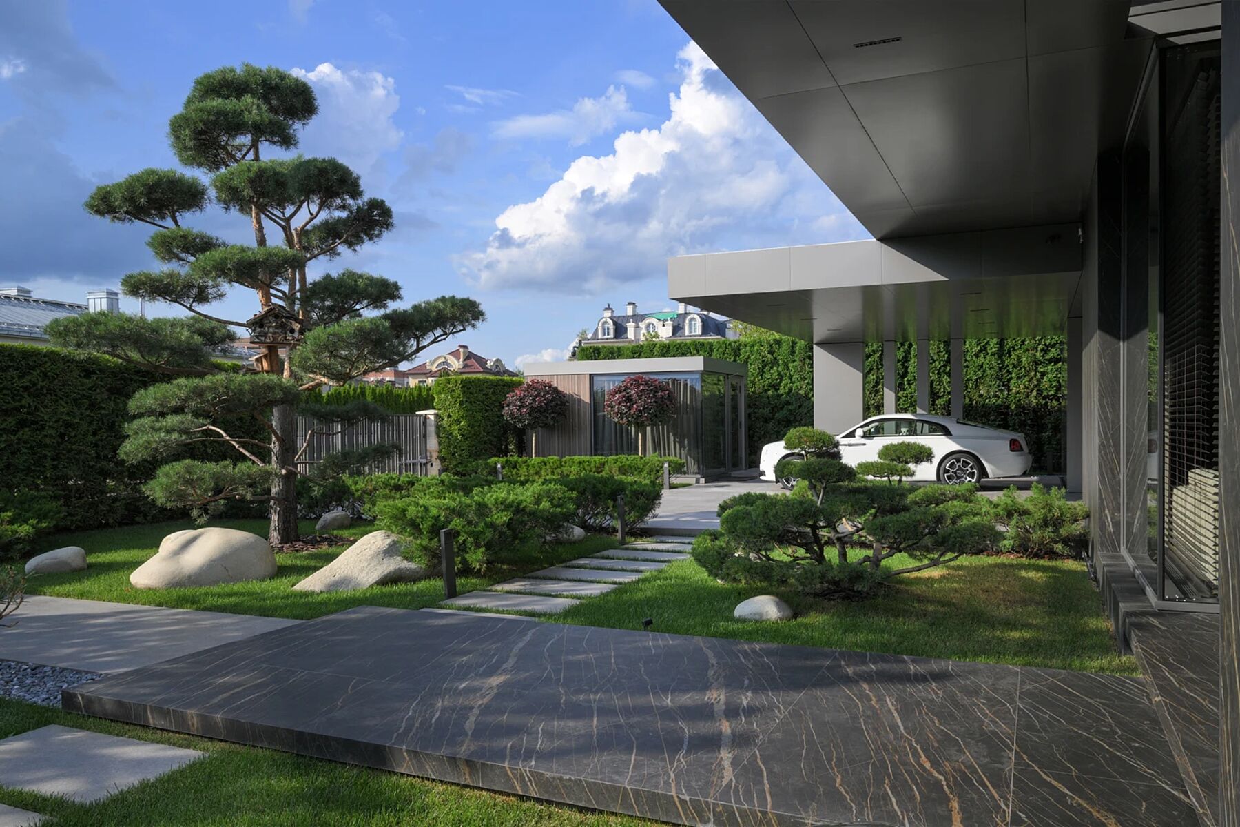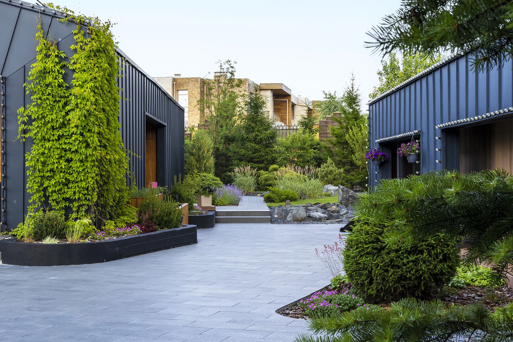 В саду Натальи отметили особую атмосферу и оригинальную стилистику строений, работу с мощением и сочетанием материалов на уровне текстур и фактур.