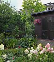 Особо отмечен сад Яны, где профессионалы подчеркнули геометричность дорожек, грамотный подбор материала, монохромность озеленения, ритмичность и уместность использования живых изгородей для зонирования и создание многослойности. Аккуратно вписаны растения с голубым оттенком хвои и массивы лилейников.