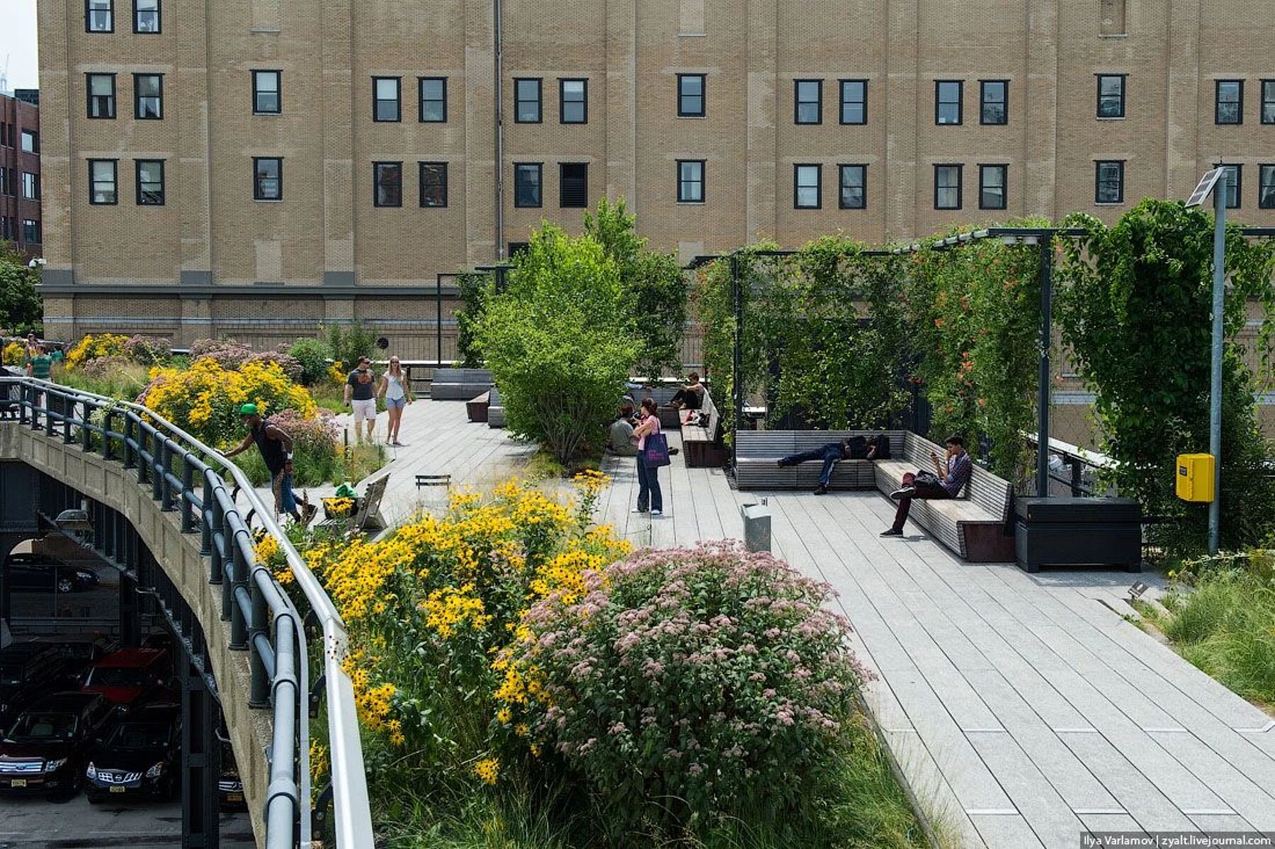 Одно из самых ярких мест в мире — это High Line в Нью Йорке. Его создали ландшафтные архитекторы, выбрав из 270 вариантов, присланных на конкурс из 36 стран мира. Парк сооружен на высоте около 9 метров от земли и наполнен идеями создания малых архитектурных форм, необычным освещением. В нем можно встретить огромное разнообразие полевой травы и кустарников и кажется, что все это выросло само собой. Парк встроен в бывшую железную дорогу на эстакаде, по которой в 1930х годах осуществлялись грузовые перевозки.