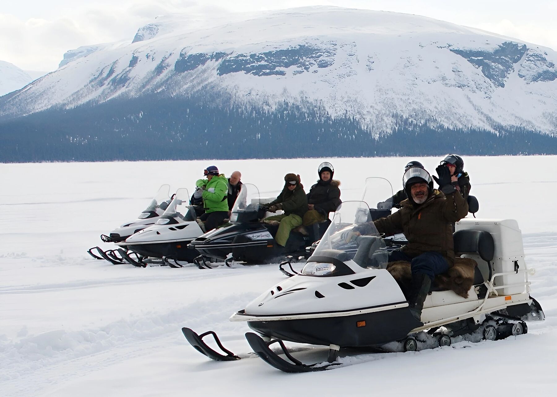 Четвертый день экспедиции будет насыщен активным отдыхом. В этот день мы отправимся в Хибины и будем кататься на снегоходах по склонам горных массивов из щелочных пород, в которых залегают более 500 разновидностей минералов, многие из которых были открыты и встречаются только здесь. В окрестностях Кировска можно увидеть места добычи полезных ископаемых, которые выглядят как вкрапления абстрактного кубического искусства среди плавных контуров древнего горного массива.