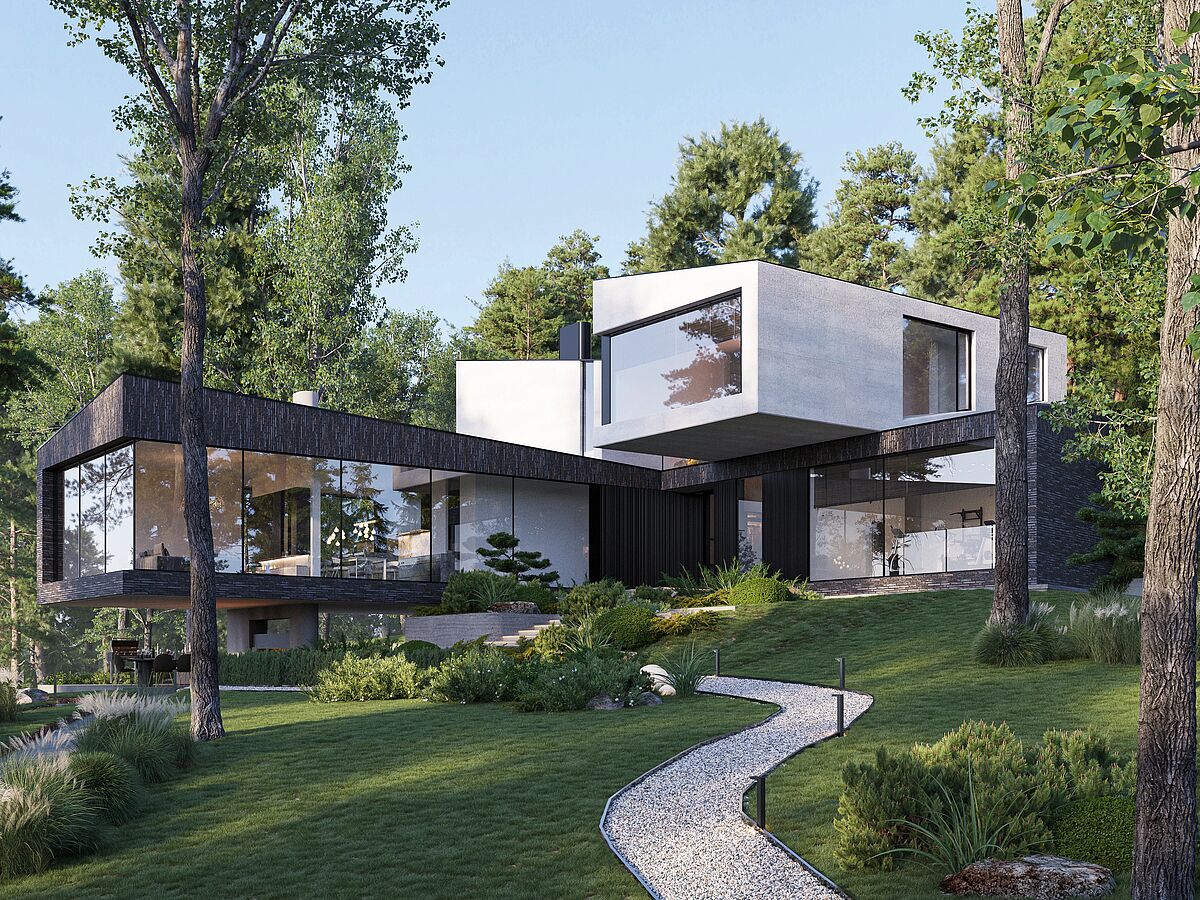 На шоукейсе студия представила портфолио с просторными и современными загородными виллами, в которых используются разнообразные текстуры и отделочные материалы, создающие узнаваемый индивидуальный облик каждого здания.