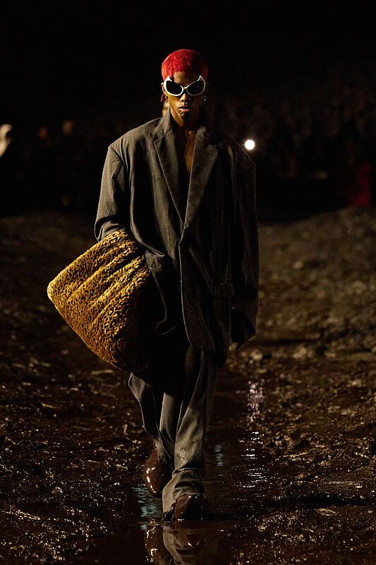 На показе Balenciaga модели шагали по грязи, словно по дну выкопанной траншеи. Инсталляцию выполнила берлинская архитектурная компания Sub в сотрудничестве с художником Сантьяго Сьеррой. Дизайнер Демна Гвасалия объяснил задумку так: «Сет-дизайн этого шоу — метафора того, что необходимо докапываться до правды и оставаться приземленными».