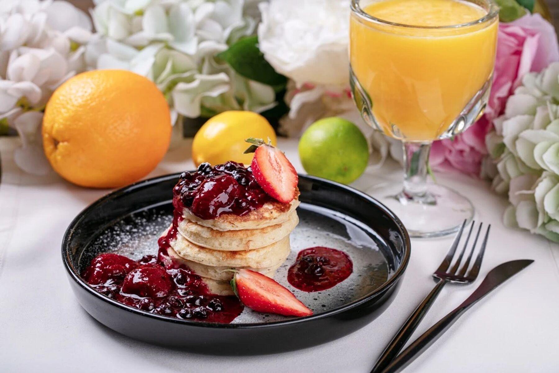 Молоко и яйца взбейте в миксере. Добавьте растительное масло и снова перемешайте. В отдельной емкости смешайте муку, соль, сахар, разрыхлитель и дрожжи, тщательно перемешайте. Соедините яично-молочную смесь с мучной и аккуратно перемешайте. Разогрейте сковороду на среднем огне и выпекайте оладьи около 2 минут с каждой стороны — они должны получиться толстыми и золотистыми. Подавайте с джемом или свежими ягодами.