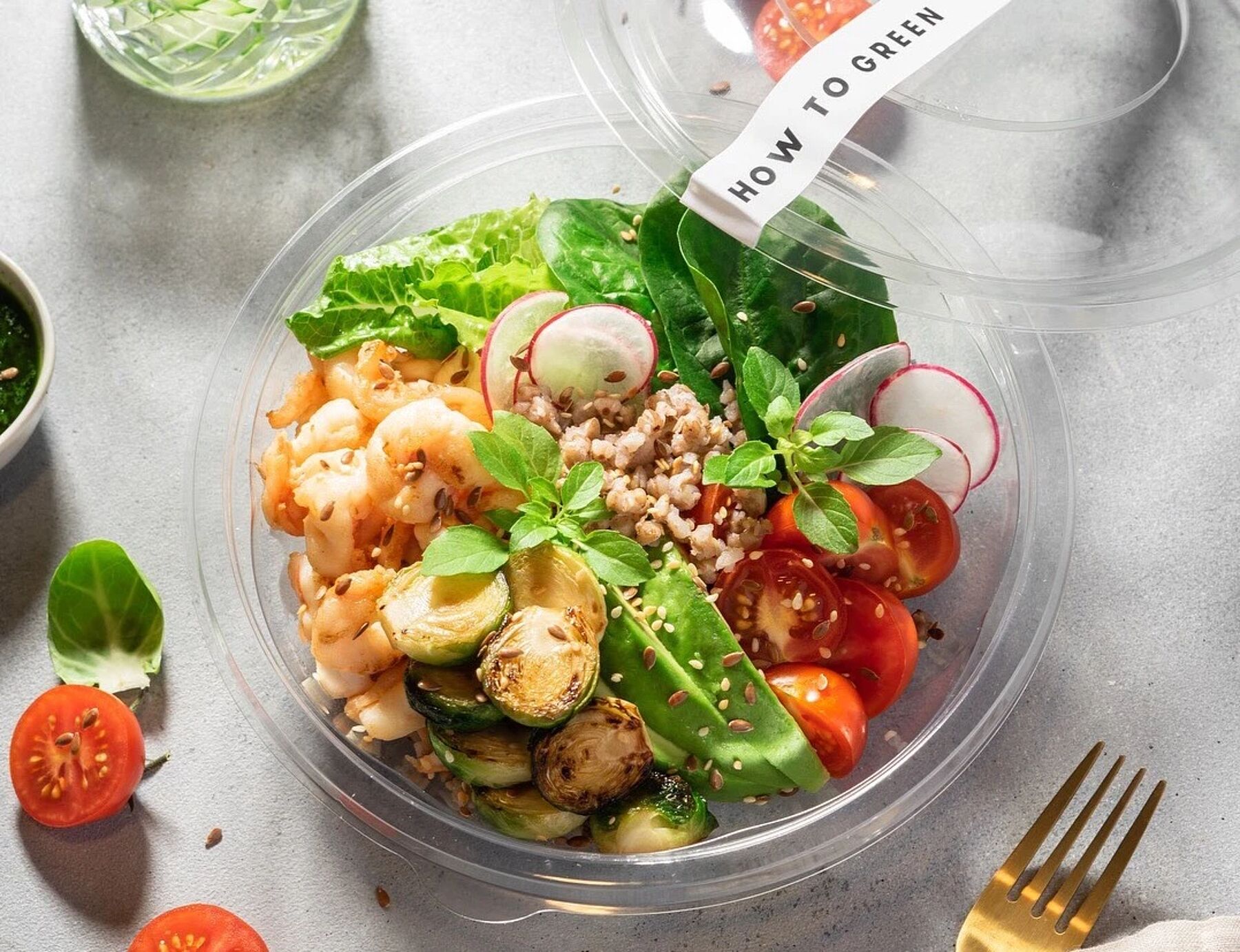 В глубокую тарелку по центру выложите гречку, а по кругу — томаты черри, креветки с брюссельской капустой, листья салата, шпинат и авокадо. Украсьте ломтиками редиса, зеленью, кунжутом и семенами льна.