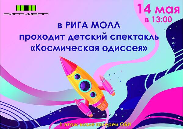 А 14 мая в 13:00 на первом этаже «Ригамолла» для малышей покажут спектакль с говорящим названием «Космическая одиссея». Детей постарше можно отправить на третий этаж, в «Киномакс» на «Стражей Галактики 3».