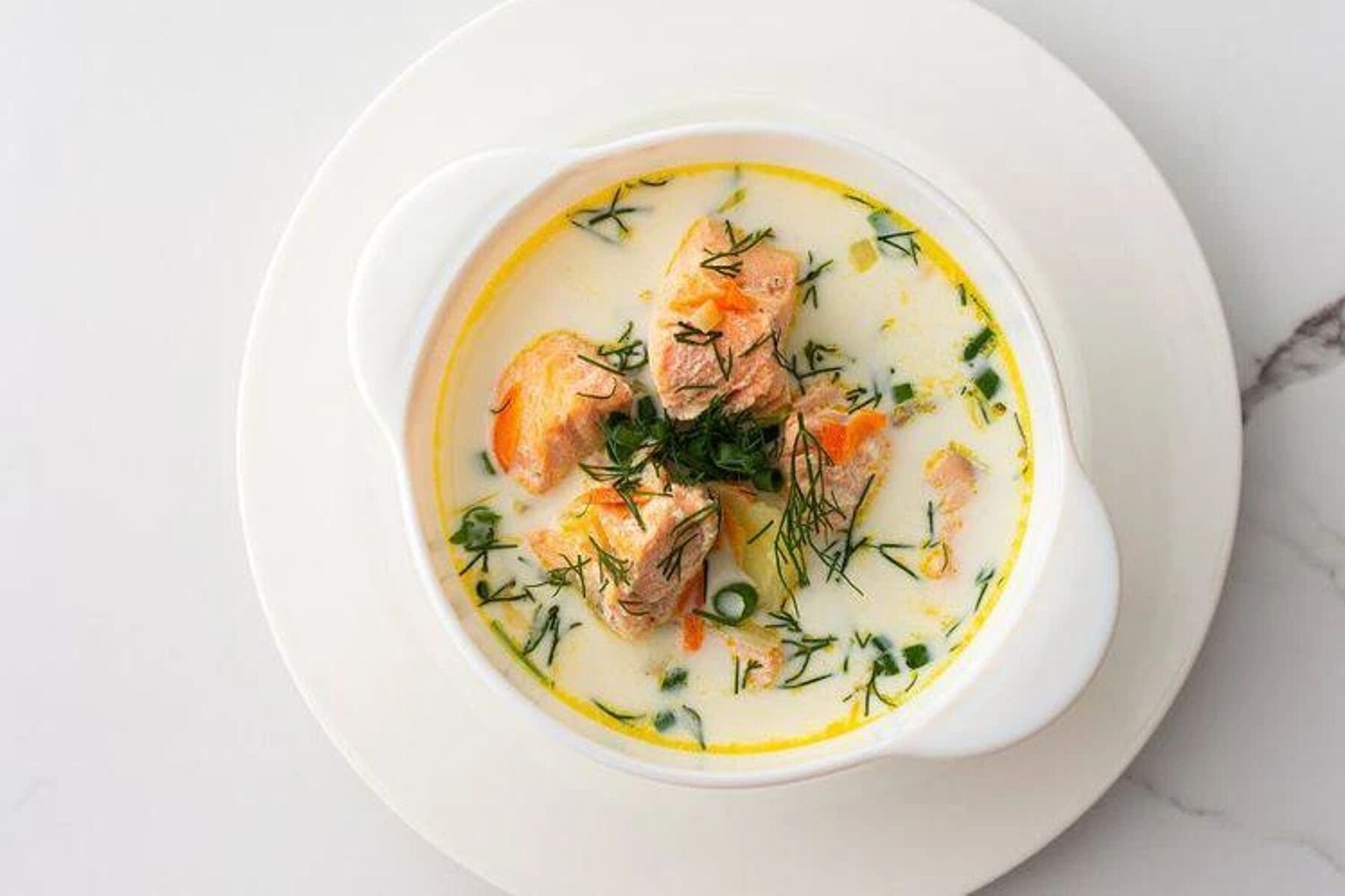 Мелко нарежьте зелень, подсолите и слегка разомните толкушкой, чтобы появился сок. Добавьте к зелени нарезанные кубиками редис, огурцы, яйца, картофель и кусочки рыбы. Затем добавьте лимонный сок, специи, сметану, квас и перемешайте.