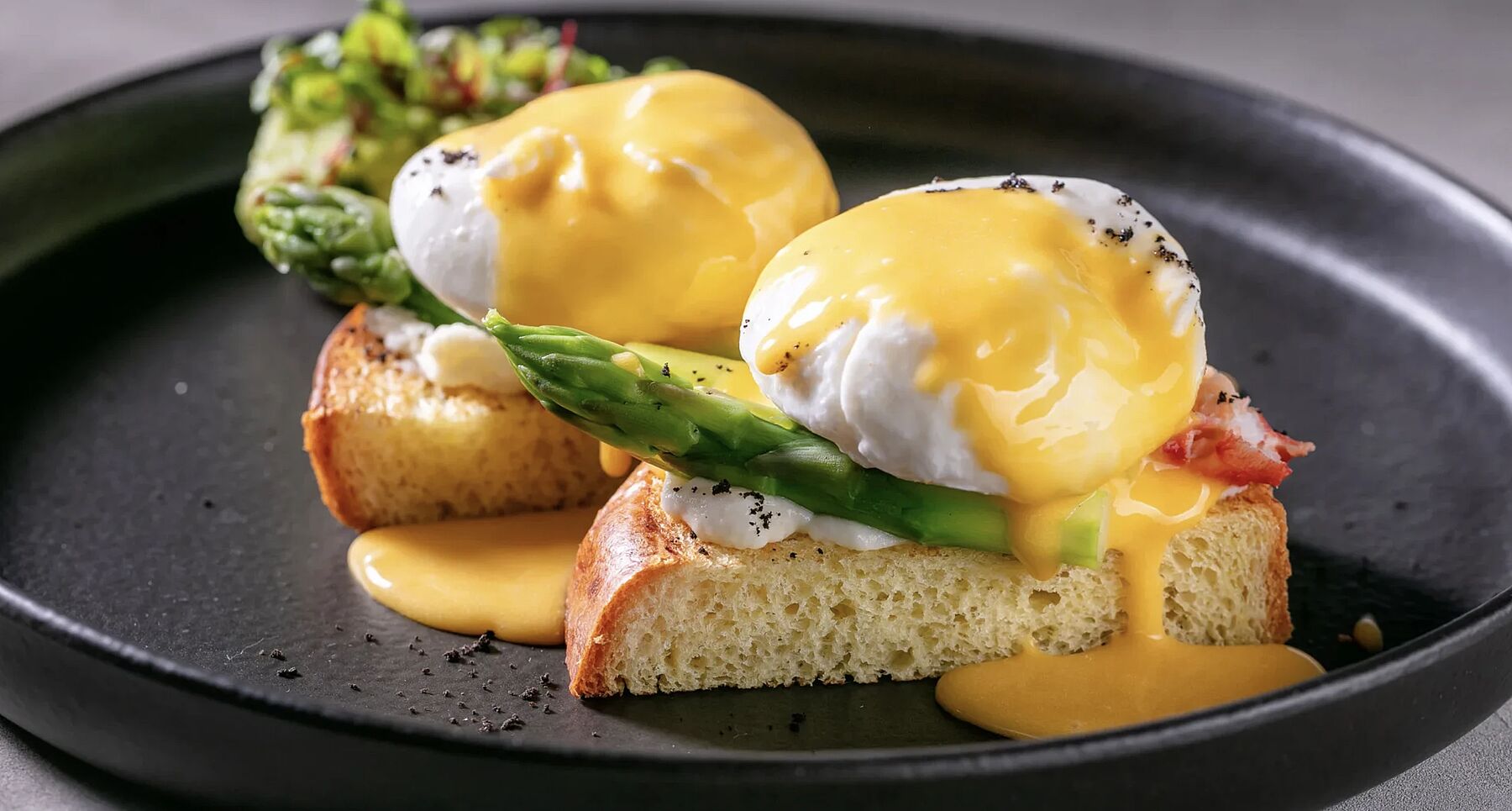 Чтобы приготовить яйца пашот, вскипятите в кастрюле 1 л воды и 60 г уксуса. Разбейте яйца по одному в небольшие емкости. Когда вода закипит, немного убавьте огонь и осторожно погрузите яйца в кастрюлю примерно на 2 минуты. Белки должны схватиться, а желтки в центре должны остаться текучими. Достаньте яйца шумовкой.