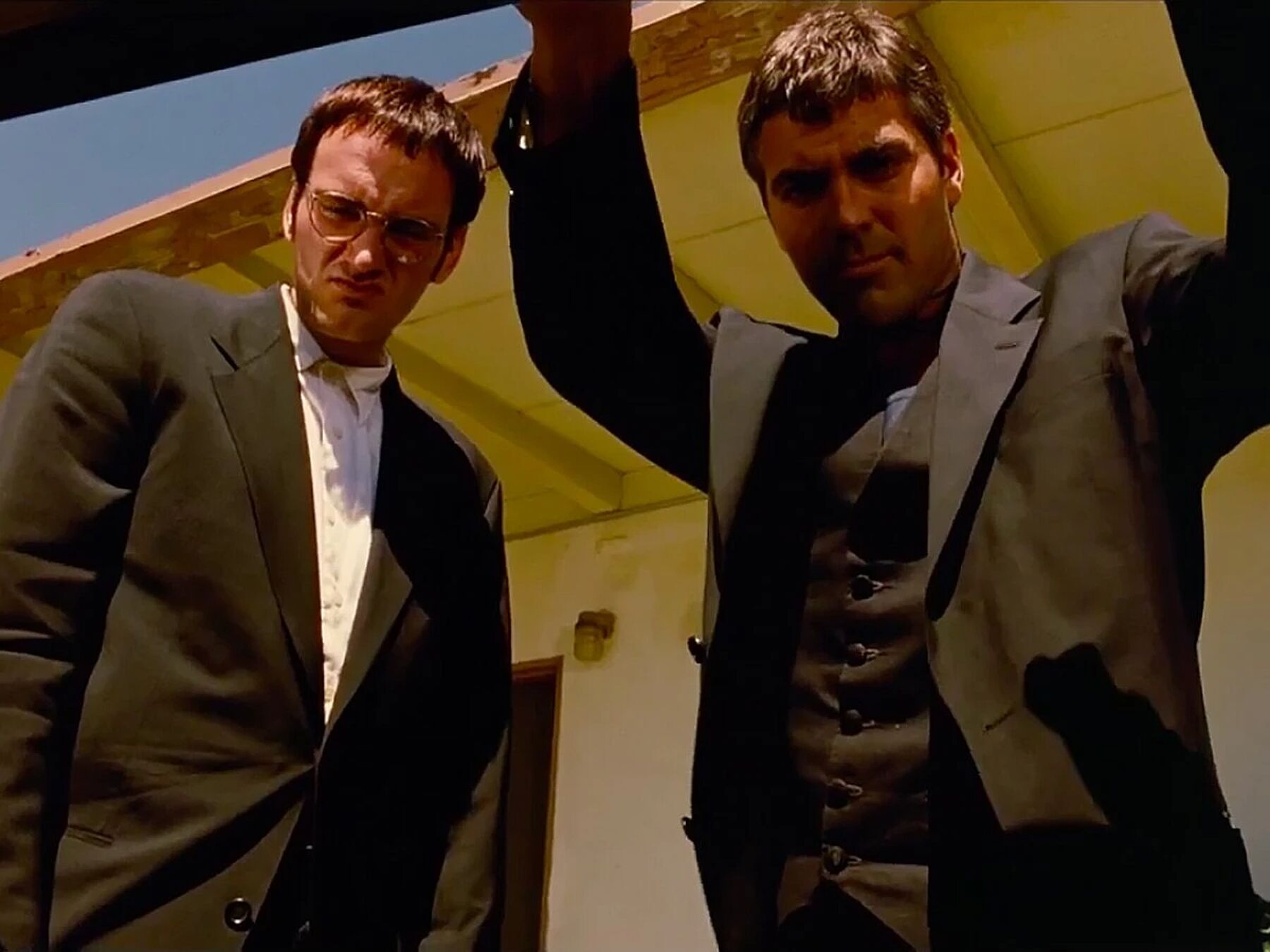 Треш-слэшер Роберта Родригеса по сценарию Квентина Тарантино. Два брата-убийцы (сам Тарантино и Клуни) попадают вместе с семейством американского пастора в мексиканский бар, который оказывается логовом вампиров. Героя Тарантино там убивают почти сразу, а вот наслаждаться тем, как молодой Клуни лихо вбивает в вампиров колы, ножки столов и все прочее, что подворачивается под руку, можно до самого конца. Жертвой становится и королева вампиров. Эта роль, почти полностью состоящая из стриптиза,— бенефис Сальмы Хайек.
