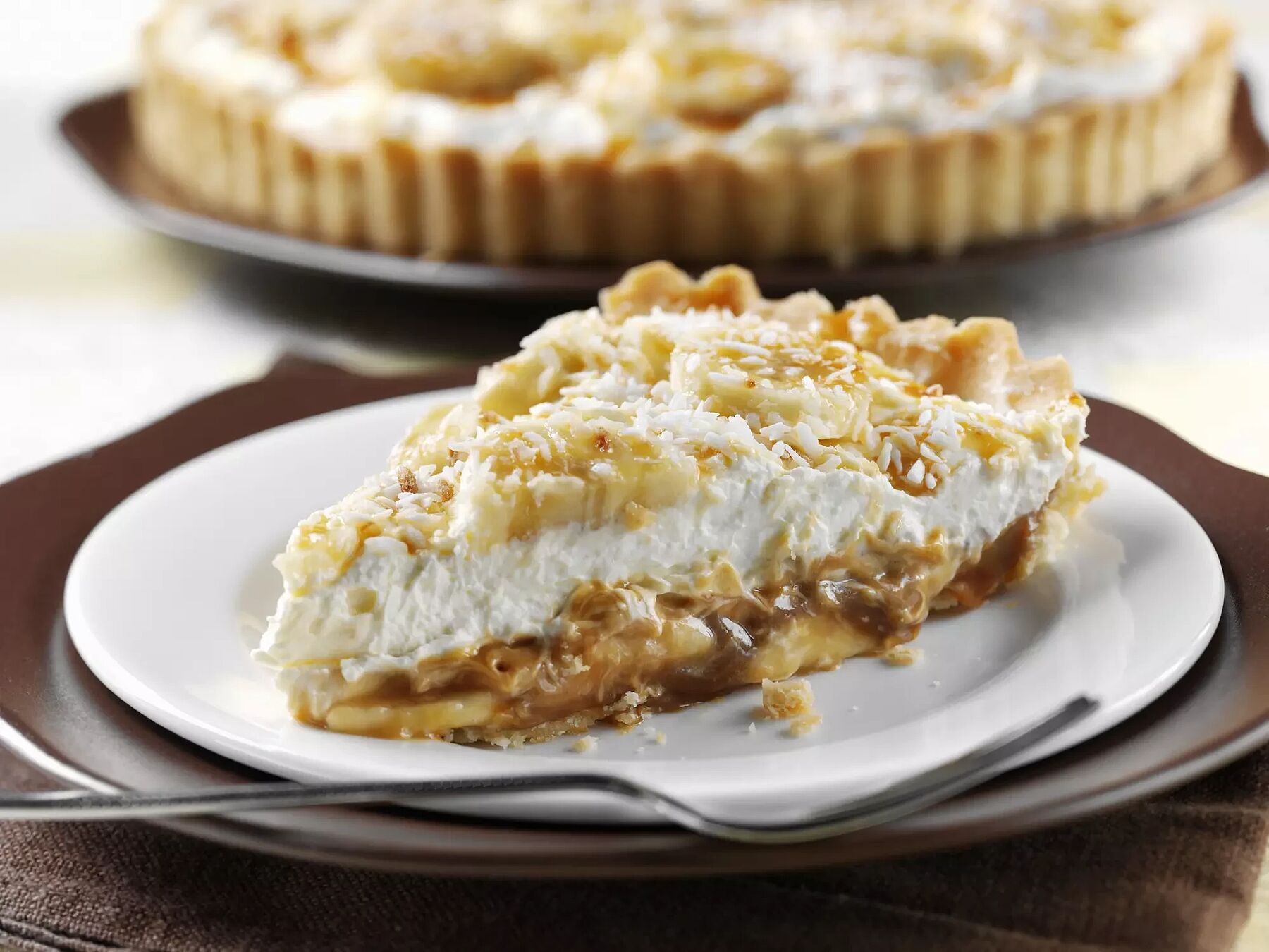 Измельчите печенье в мелкую крошку и смешайте его с одной пачкой растопленного сливочного масла. Получившуюся смесь вдавите в форму для выпечки, разровняв края. Отложите основу для пирога в сторону. Смешайте в сотейнике коричневый сахар с 2 столовыми ложками воды. Разогревайте на среднем огне до полного растворения сахара, затем кипятите до тех пор, пока сироп не приобретет янтарный окрас — на это уйдет примерно 5 минут. Снимите карамель с огня, добавьте в нее вторую пачку сливочного масла, затем сгущенное молоко и перемешивайте соус до загустения. Покройте им бисквитную основу и уберите в холодильник на 1–1,5 часа. Налейте сливки в глубокую чашу и взбейте до загустения. Следите за тем, чтобы сливки не превратились в масло. Тонко нарежьте 2 банана и добавьте их в сливочный крем. Достаньте из холодильника основу для пирога, заполните ее взбитыми сливками. Сверху украсьте пирог дольками оставшегося банана и шоколадной стружкой.