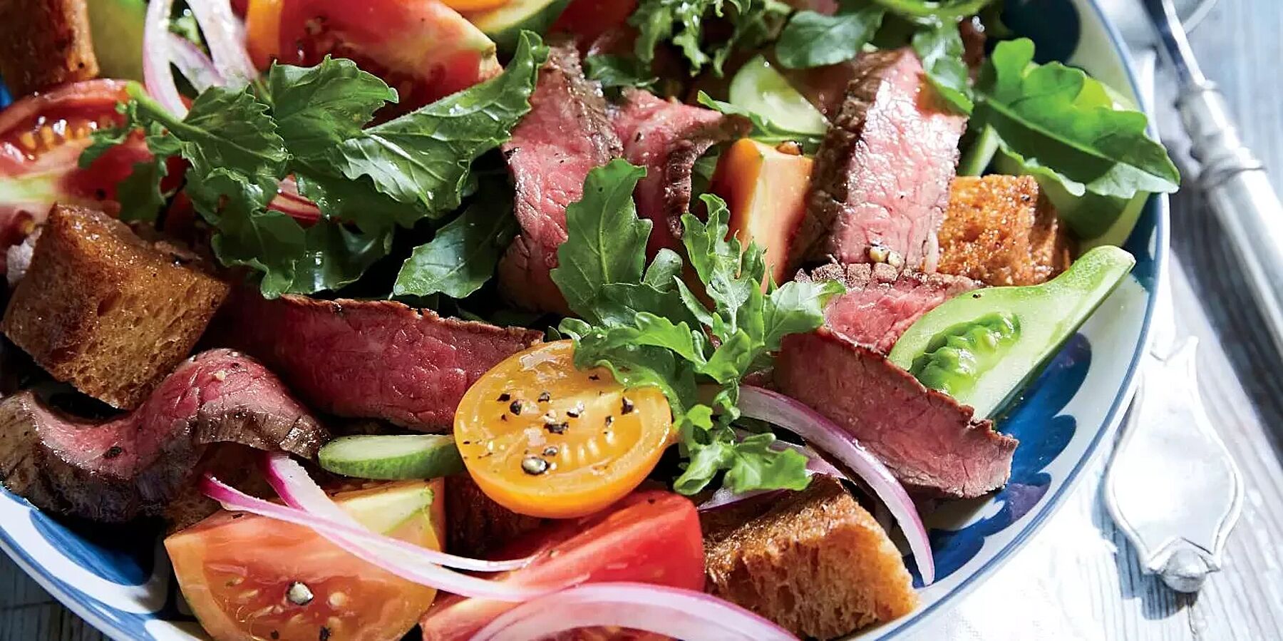 Взбейте в блендере сок и цедру лимона, очищенный и нарезанный лук-шалот, хересный уксус, нашинкованные петрушку и кинзу, перец серрано и соль, после чего дайте получившемуся соусу настояться. Тем временем достаньте стейк из холодильника и оставьте его согреваться до комнатной температуры. Тщательно высушите мясо бумажными полотенцами и обжарьте на раскаленной сковороде-гриль по 1–1,5 минуте с каждой стороны. Дайте мясу отдохнуть 3–5 минут. Перед подачей полейте стейк соусом чимичурри.