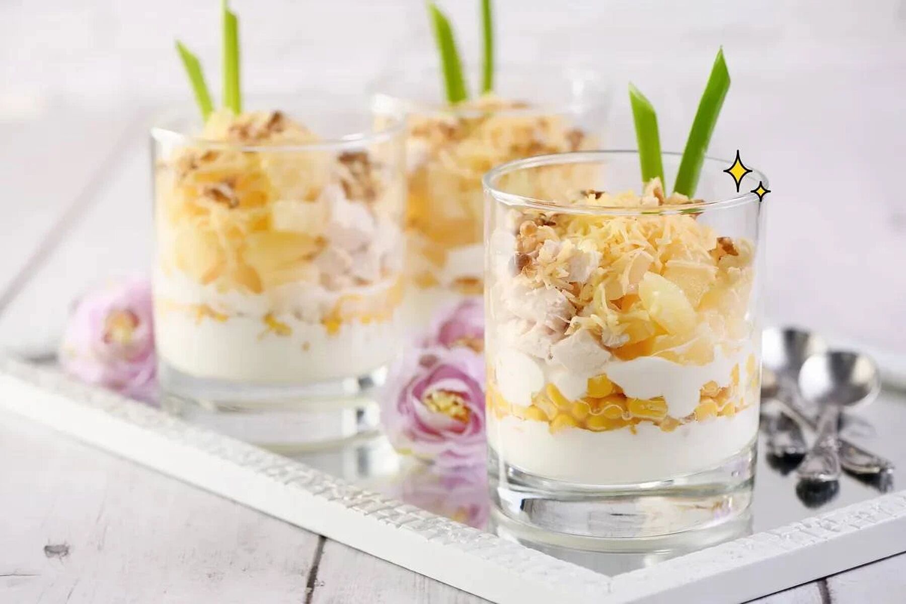 Сварите филе, отсудите и нарежьте небольшими кубиками или соломкой. Слейте жидкость из банки с ананасами, нарежьте их кубиками. Натрите сыр на терке. В небольшую миску налейте майонез и выдавите туда чеснок, перемешайте. Выложите курицу, ананасы и сыр в салатник, полейте соусом. Добавьте специи по вкусу.