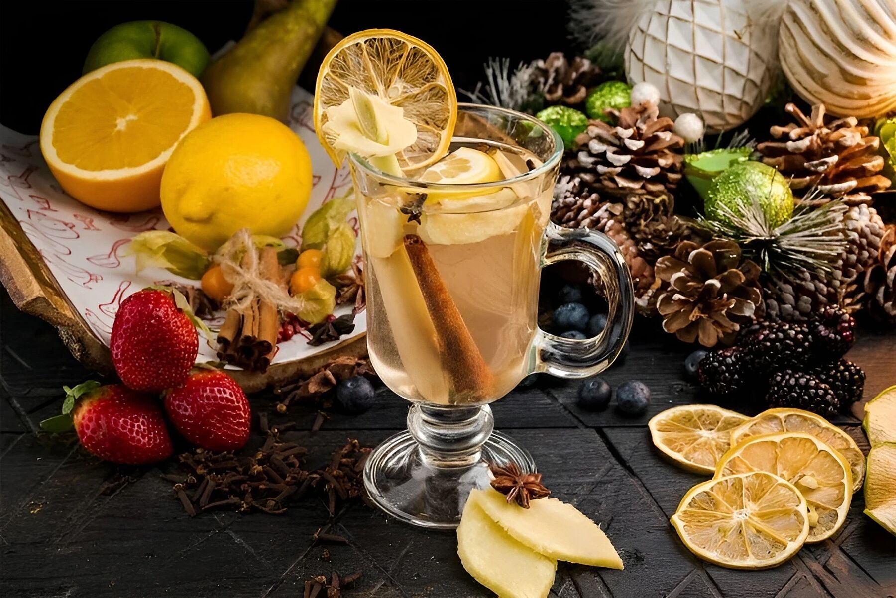 Вскипятите воду, разведите в ней мед и залейте ею травяной сбор. Дайте настояться как минимум ночь — в результате получится настой темного цвета. Процедите. Перед подачей нагрейте настой снова. В чайник положите мяту, лайм, разрезанный на четвертинки, и 1 кружочек лимона. Залейте настоем, посыпьте корицей и подавайте.