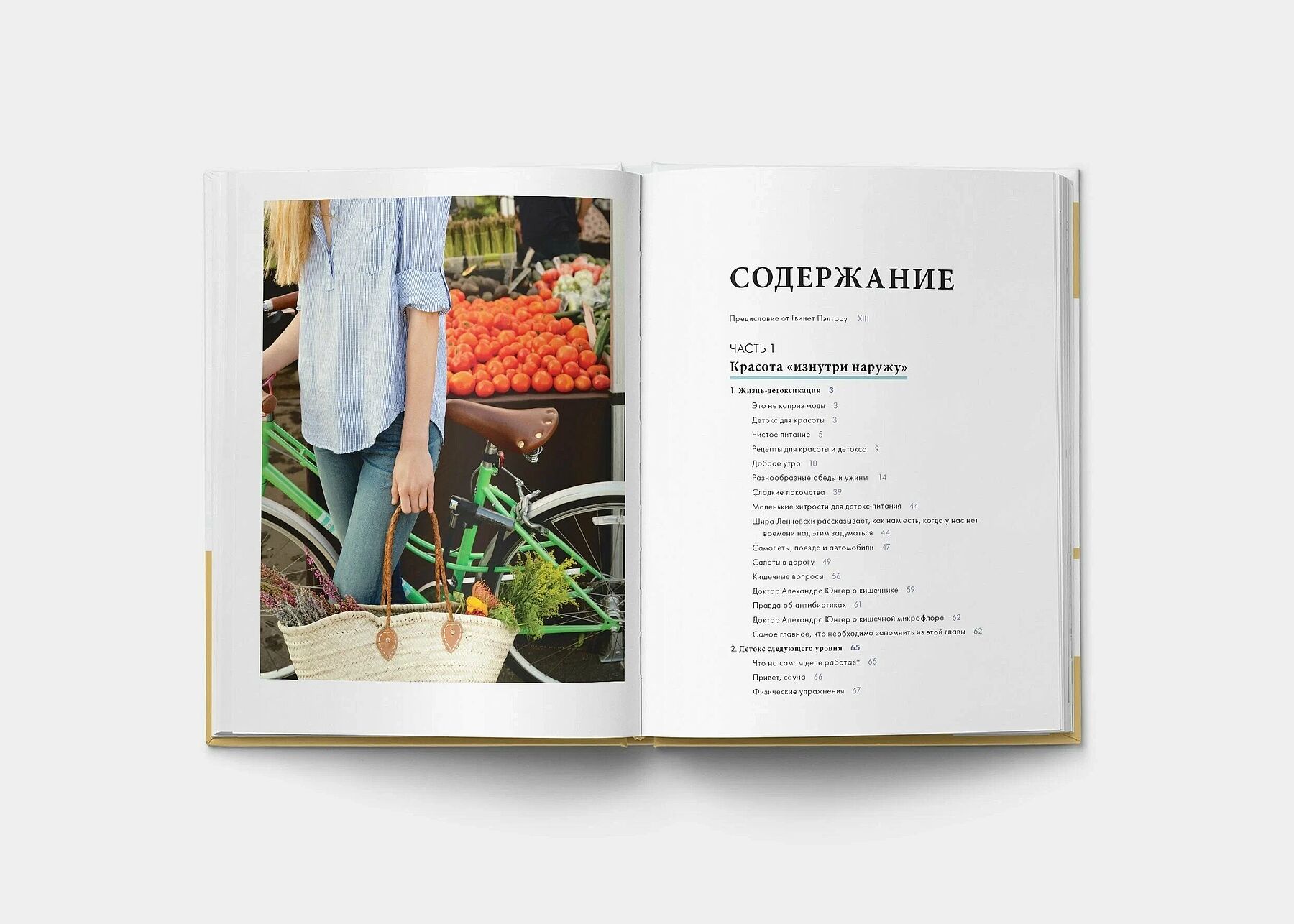 Пэлтроу — давно не только и не столько актриса, сколько успешная предпринимательница, специализирующаяся на здоровом образе жизни. В ее интерпретации это значит не просто есть полезную еду, но и например, выглядеть естественно и вообще стремиться находить гармонию во всем, что ты делаешь. Эта конкретная книга за авторством знаменитости учит, помимо прочего, делать простые, но эффектные прически, накладывать «безопасный» макияж. Внутри также рецепты, план детоксикации организма и спортивных тренировок, а еще более сотни фотографий, все это иллюстрирующих.