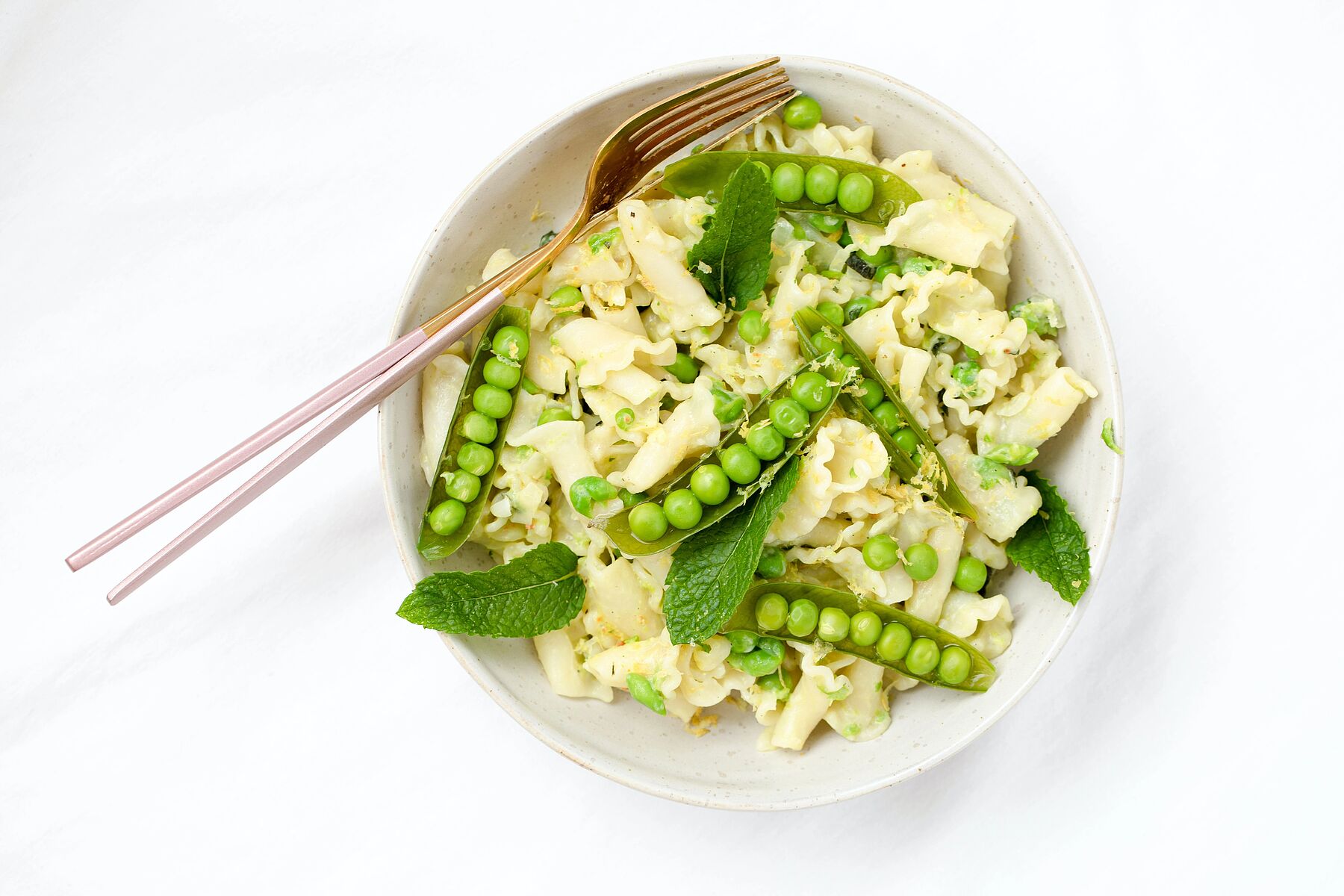 Сначала приготовьте соус. Для этого мелко нарежьте немного лука, а грудинку или любое другое копченое мясо — кубиками. Разогрейте на сковороде оливковое масло и тушите лук вместе с грудинкой и зеленым горошком (лучше использовать свежий, а не сушеный или консервированный). Тем временем сварите пасту (в идеале — фарфалле). За несколько минут до готовности соуса влейте небольшую порцию сливок. Подождите, пока жидкость немного не выпарится, и выключайте огонь. Готовую пасту переложите на сковороду, хорошо перемешайте. Подавайте с тертым сыром.