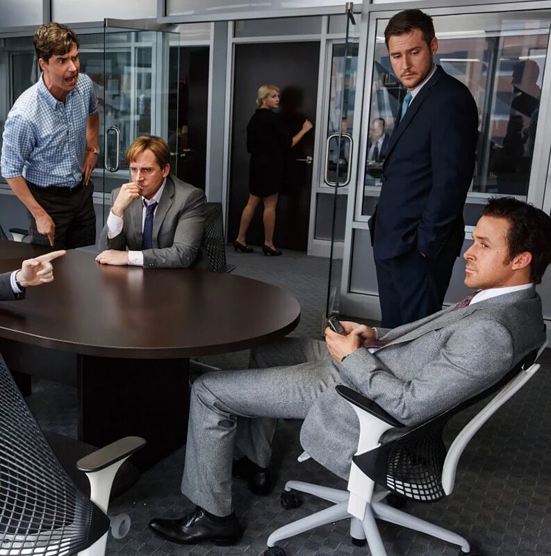 Фильм о событиях финансового кризиса 2007–2008 годов. Несколько волков с Уолл-Стрит смогли предсказать их развитие, сыграли на понижение курса ипотечных облигаций и отлично заработали. В главных ролях помимо Гослинга — такие же боги голливудской мужской красоты Кристиан Бейл и Брэд Питт.