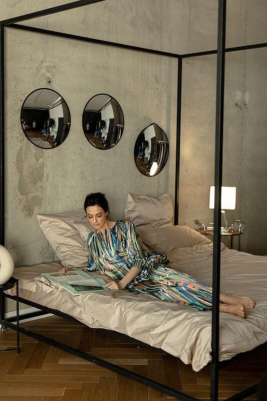 Сделать дом еще более нарядным поможет наш партнер, марка Mollen, которая создает роскошный текстиль и аксессуары для дома премиум класса. В Mollen придумали оригинальную идею капсульных коллекций: в них входят постельное белье, домашняя одежда и парфюм. Коллекции можно сочетать друг с другом в любых комбинациях — есть широкая линейка однотонных цветов и более сотни уникальных принтов. Например, в коллекции «Сказки» использованы мотивы традиционных узоров разных регионов России. Коллекция «Редкий экземпляр» посвящена животным и растениям Красной Книги России. А орнаменты коллекции «Композиторы» — оммаж произведениям Чайковского, Глинки, Мусоргского, Прокофьева, Шостаковича. Все, что создает Mollen, сделано в России, используются только натуральные ткани высокого качества: египетский хлопок макосатин 400 ТС и плотный шелк 22 момми. Это мировой стандарт качества элитного текстиля. А еще в Mollen могут подобрать текстиль под ваш интерьер: приедут домой с образцами, произведут замеры и сошьют на заказ постельное белье, покрывала, декоративные подушки, шторы. Для резидентов Villagio действует 10-процентная скидка на всю линейку бренда. Получите скидку прямо сейчас, связавшись удобным способом: