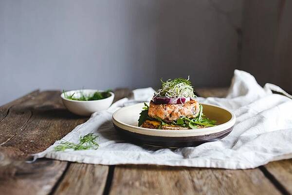 Замочите хлеб в подогретом молоке. Очистите и мелко нарежьте лук, затем измельчите его в блендере и переложите в миску. Взбейте яйца миксером. Нарежьте рыбу некрупными кусочками, охладите в морозилке примерно 10 минут. Переложите рыбу в блендер — измельчайте ее, добавляя небольшими порциями, на режиме пульсации: лосось не должен превратиться в пасту. Переложите получившийся фарш в большую миску. Отожмите хлеб, добавьте его к лососю вместе с луковой пастой и взбитыми яйцами, тщательно перемешайте все ингредиенты. Налейте на сковороду-гриль немного оливкового масла и разогрейте ее на среднем огнем. Формируйте из фарша небольшие котлеты и обжаривайте около трех минут с каждой стороны.