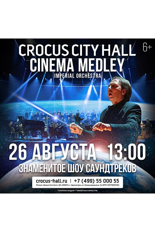 В субботу со сцены «Крокус Сити Холла» звучит музыка из лучших фильмов в истории кино. На концерте в 13:00 восемьдесят ведущих музыкантов Санкт-Петербурга в составе Imperial Orchestra сыграют композиции из «Звёздных войн», «Гарри Поттера», «Пиратов Карибского моря», «Призрак опера», бондианы. А на шоу в 19:00 к симфоническому оркестру добавятся орган и хор Imperial Chorus — на сцену выйдут более 120 музыкантов. Им предстоит исполнить хиты из саундтреков «Мстителей», «Трансформеров», «Титаника», «Терминатора», а также «Аватара» и «Властелина колец».