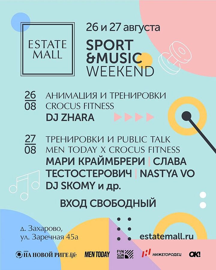 В Estate Mall открывают караоке, устраивают винное казино и проводят спортивно-музыкальный уик-энд. Адептам ЗОЖа в субботу стоит прийти на тренировку с фитнес-блогером Алексеем Столяровым. Детей можно будет занять Днем знаний в сказочном королевстве. В воскресенье пройдет паблик-ток на тему «Как полюбить себя и спорт? И как сила внутренняя связана с силой внешней?» Участвуют многократный чемпион России по боевым искусствам и блогер Саша Стоун, а также фитнес-тренер Ирина Ротач. Вечером на главной площади устроят концерт. Тем, кто к ЗОЖу пока присматривается, тоже не дадут заскучать. В субботу в винотеке «Первый нос» будет работать винное казино в формате слепой дегустации. А еще оба дня в молле идет открытие клубного караоке-проекта Royal Estate Karaoke & Lounge Bar, загородного филиала клуба Royal Arbat.