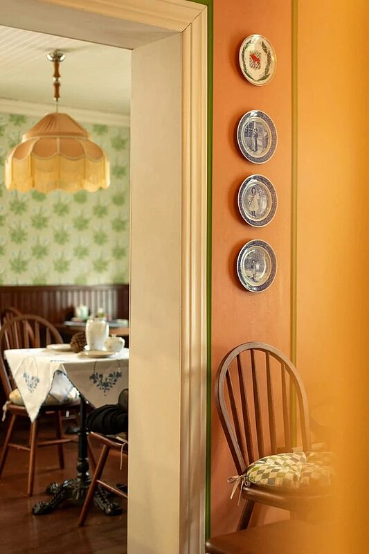 Помимо духовной пищи, в поселке все в порядке и с обычной. Зайдите в семейное кафе «Робин» на старой писательской даче, которое открыл ресторатор Игорь Ланцман, создатель теперь уже легендарного гастрономического проекта Gimpel здесь же, в Переделкино. Для детей на чердаке «Робина» организована волшебная игровая, в меню — блюда по мотивам дачной жизни Чуковского, Пастернака и других переделкинских писателей: котлетки из брундуляка из «Бибигона», вегетарианские супы, яблочный пирог, кофе из злаков. За десертом отправляйтесь в гостиницу «Переделкино» — там в двух отреставрированных телефонных будках работает эклерная Александра Раппопорта «Алло Алло». Кроме классики вроде пирожных с заварным ванильным кремом, можно попробовать эклер с крабом и тобико, с пастрами, медово-горчичным соусом и маринованным огурцом и даже с оливье и трюфелем.