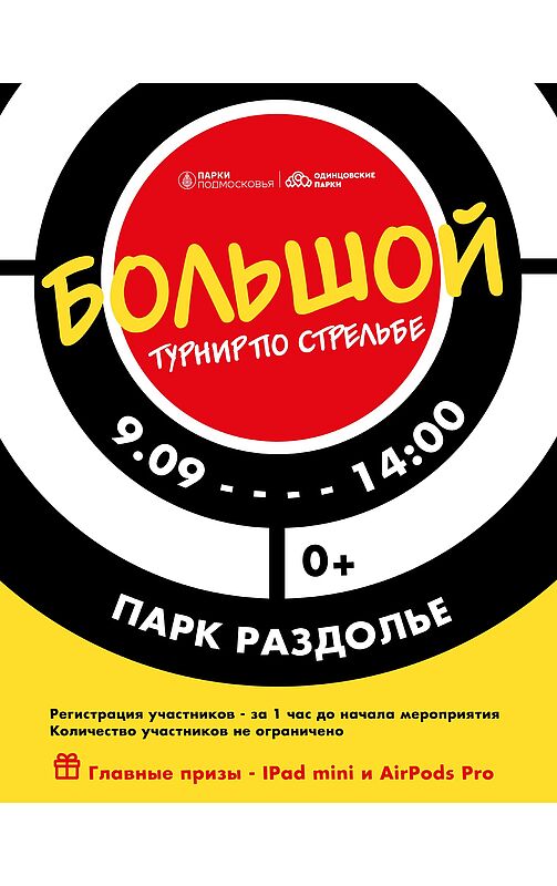 В парке Малевича в субботу пройдет целый фестиваль «Территория спорта». Будут показательные выступления и мастер-классы профессиональных спортсменов по волейболу, баскетболу, падел-теннису, дартс, боксу, а также, конечно, тренировки — по kangoo jumps и jumping fitness. В детской зоне приготовят футбольный тир, настольный и аэро-хоккей. В парке Раздолье в тот же день устроят большой турнир по стрельбе на титул чемпиона всех чемпионов. Ждут всех, даже детей, каждому дадут сделать 17 выстрелов, тем, кто пройдет в финал, подарят IPad mini и AirPods Pro.
