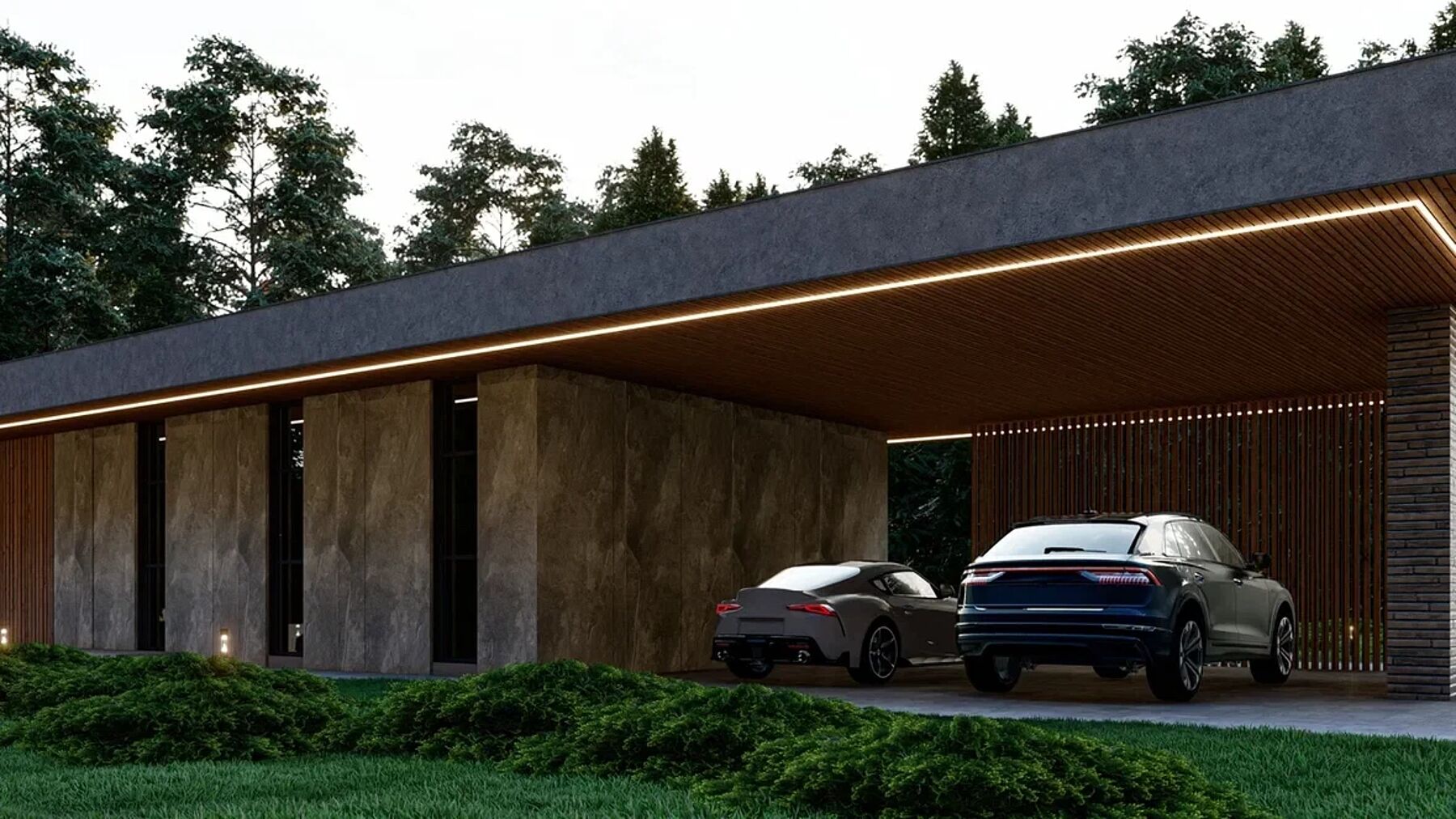 Перед нами стояла задача создать проект гостевого дома с террасой и навесом под автомобиль. Это второй дом на участке. Он решает две задачи. Первая задача — это дом для гостей которые могут приехать и остановиться в этом доме на долго. Так как в доме есть все необходимое для жизни за городом. Вторая задача — это место для вечеринок и вечерних посиделок на террасе.