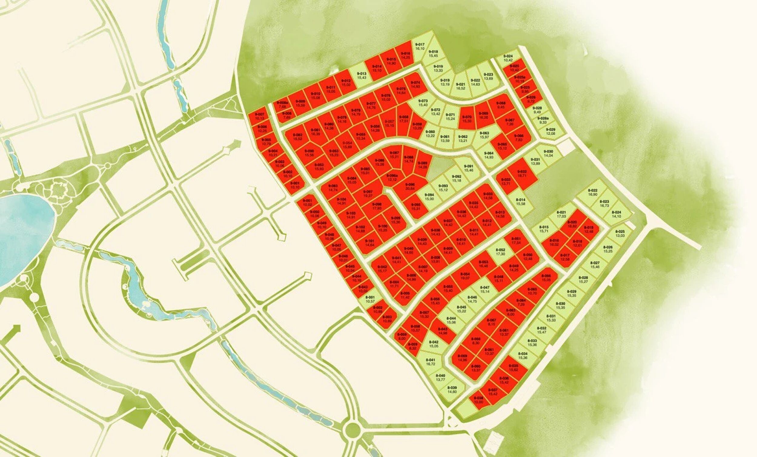 Площадь зеленых зон — 90 гектаров. На территории — пять тематических парков: «Лабиринт», «Усадьба», «Круглое озеро», «Парк Трёх Озер» и «Остров». Их соединяют 10 каналов протяженностью 5 км, создающих атмосферу уюта и уединения. В поселке 7 озер, крупнейшее из которых занимает 4 га и достигает 12 м глубины. На центральном озере обустроена пляжная зона.